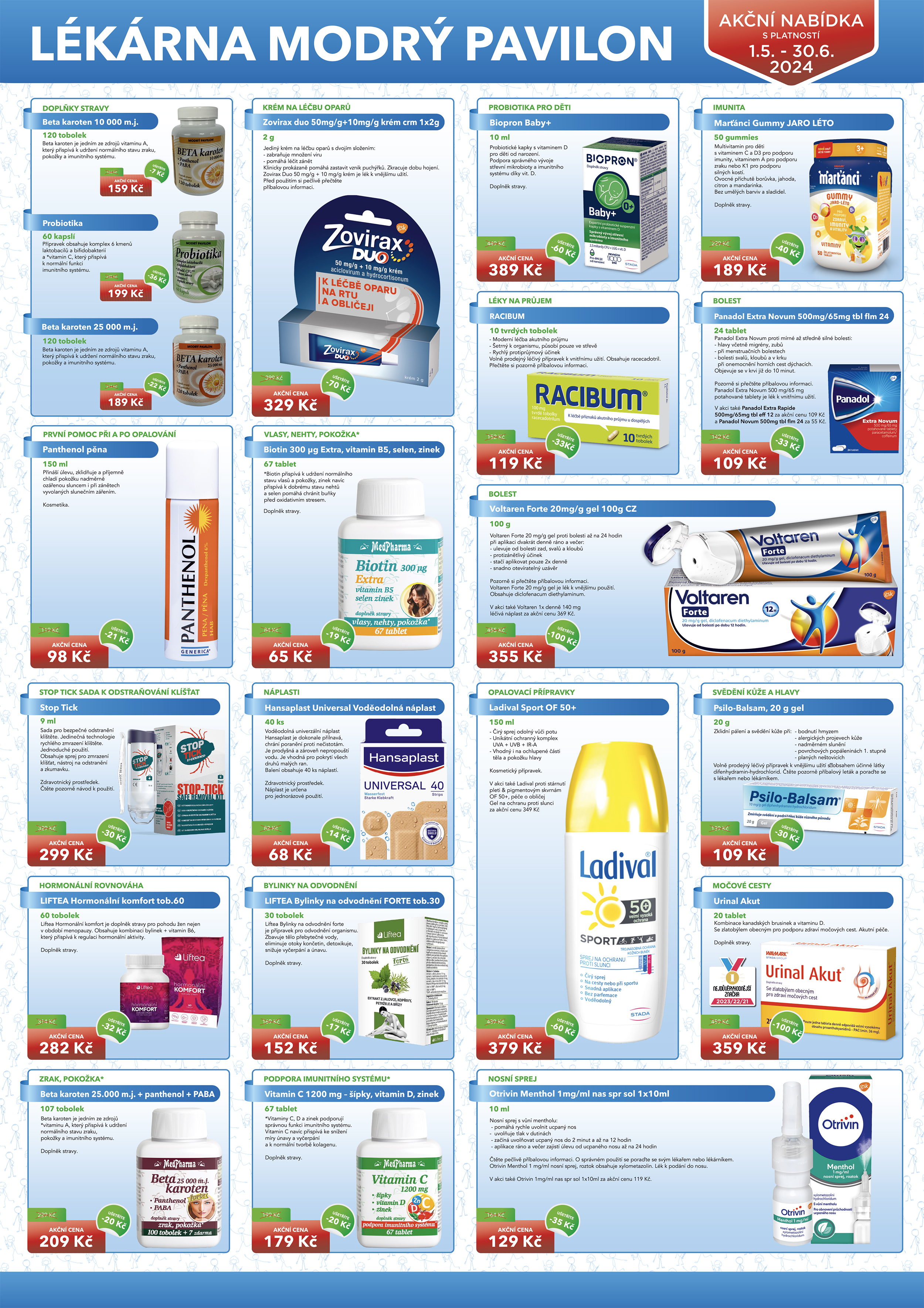 Zveřejněno: 06. května 2024 06 Kvě Akční nabídka Lékárny MODRÝ PAVILON / květen – červen 2024 Posted at 09:24h in Aktuality by admin 0 Poznámky 0 Likes Share